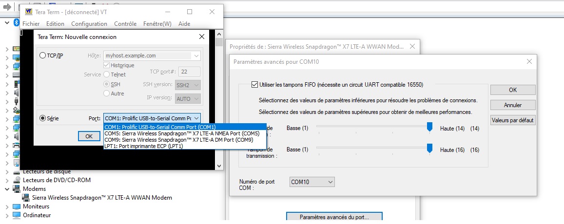 The modem is on port 10. When I launch Tera Term, it does not see it. However, it sees two other ports. I have uninstalled and reinstalled the drivers, but it doesn’t change anything.